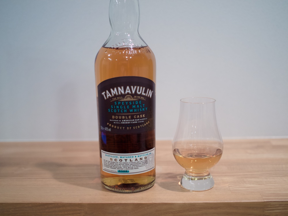 スペイサイドのシングルモルト「タムナヴーリン ダブルカスク」は、アメリカンオークのバーボン樽熟成後、オロロソ・シェリー樽でフィニッシュしたコスパ抜群の一本。シェリー樽系ウイスキーらしい果実感と甘さが特徴で、ストレート派から支持を集めています。