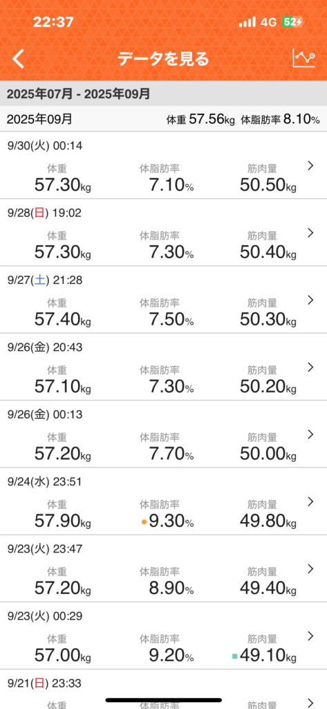 体重と体脂肪率は明らかに改善しました。